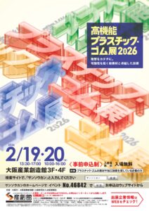 大阪産業創造館で開催されます「高機能プラスチック・ゴム展2026」に前回ご報告した通り出展致します、皆様のご来場をお待ち申し上げます。